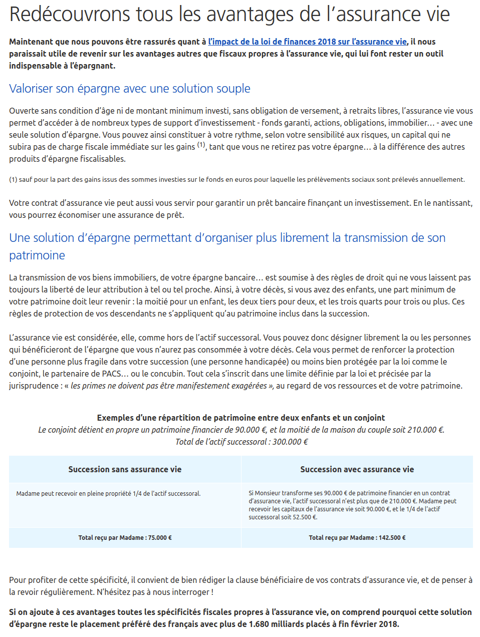 Nous vous fournissons de nombreuses informations lors d'une première entrevue pour vous expliquer pourquoi l’assurance-vie demeure « le placement préféré des Français » ! Pourquoi ce placement est-il un excellent moyen de bénéficier d’un complément de revenus à la retraite ? Pourquoi devient-il plus intéressant huit ans après sa souscription ? En quoi constitue-t-il une solution notable d’avantages fiscaux ?